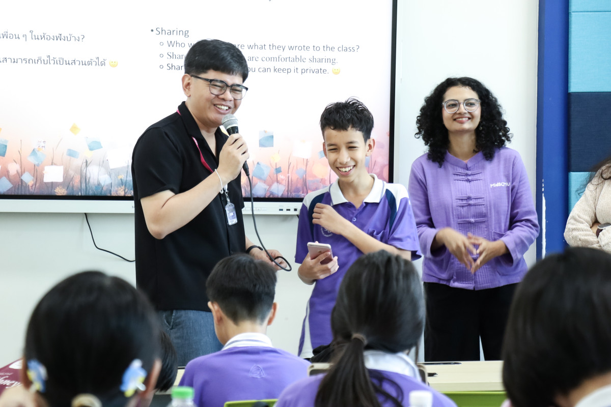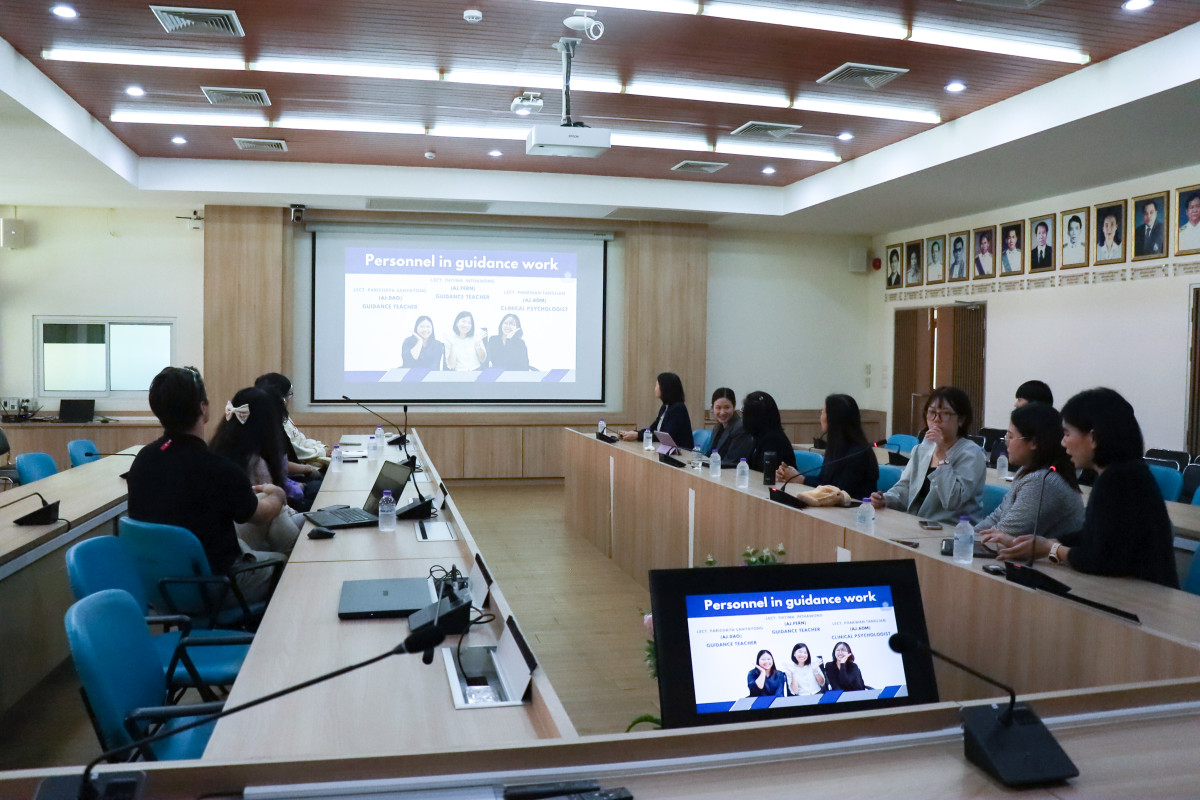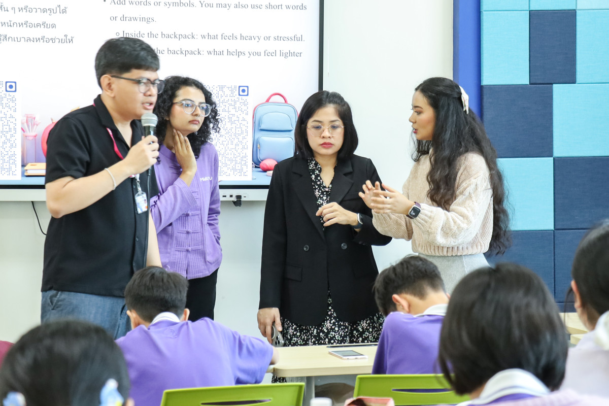 ในโอกาสเข้าศึกษาดูงาน Mental Health in School โดยฝึกปฏิบัติการจัดกิจกรรมเพื่อเสริมสร้างความรู้และทักษะในด้านสุขภาพจิตเด็กและวัยรุ่น กับนักเรียนชั้น ม.1/5 และรับฟังการบรรยายในหัวข้อ Introduction and Overview of the School's Guidance Services and Student Support System