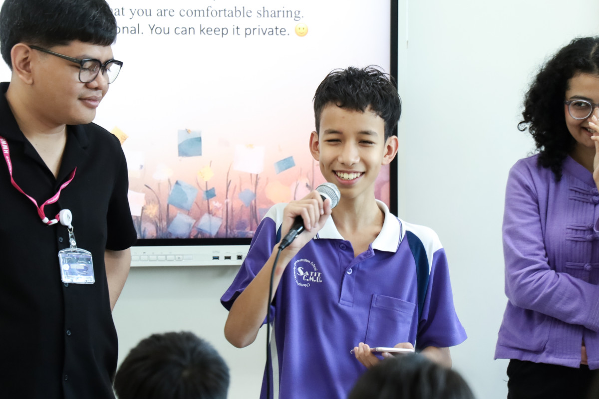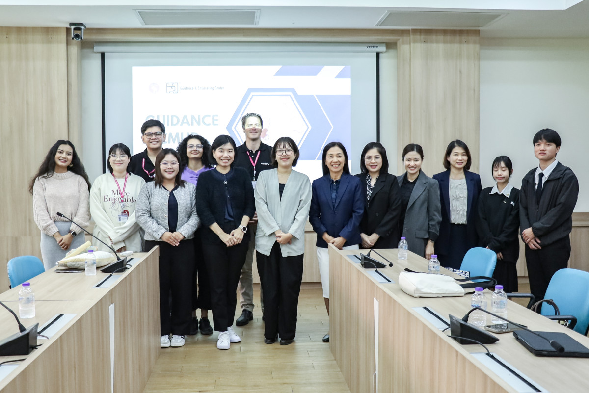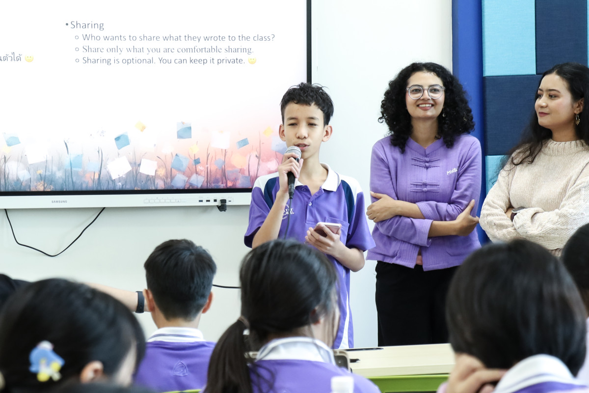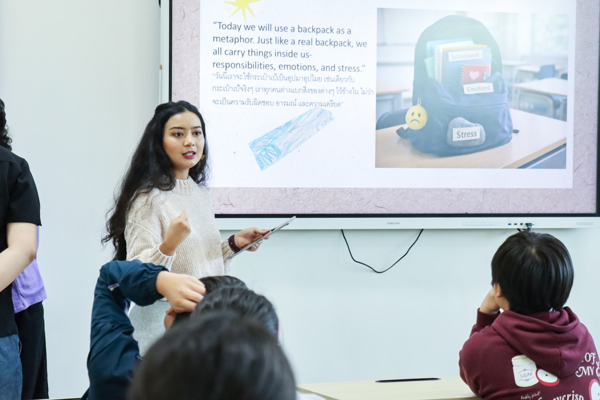 ในโอกาสเข้าศึกษาดูงาน Mental Health in School โดยฝึกปฏิบัติการจัดกิจกรรมเพื่อเสริมสร้างความรู้และทักษะในด้านสุขภาพจิตเด็กและวัยรุ่น กับนักเรียนชั้น ม.1/5 และรับฟังการบรรยายในหัวข้อ Introduction and Overview of the School's Guidance Services and Student Support System