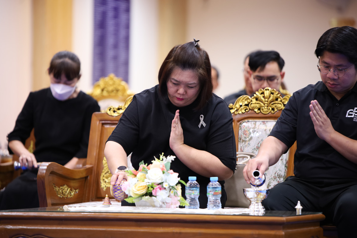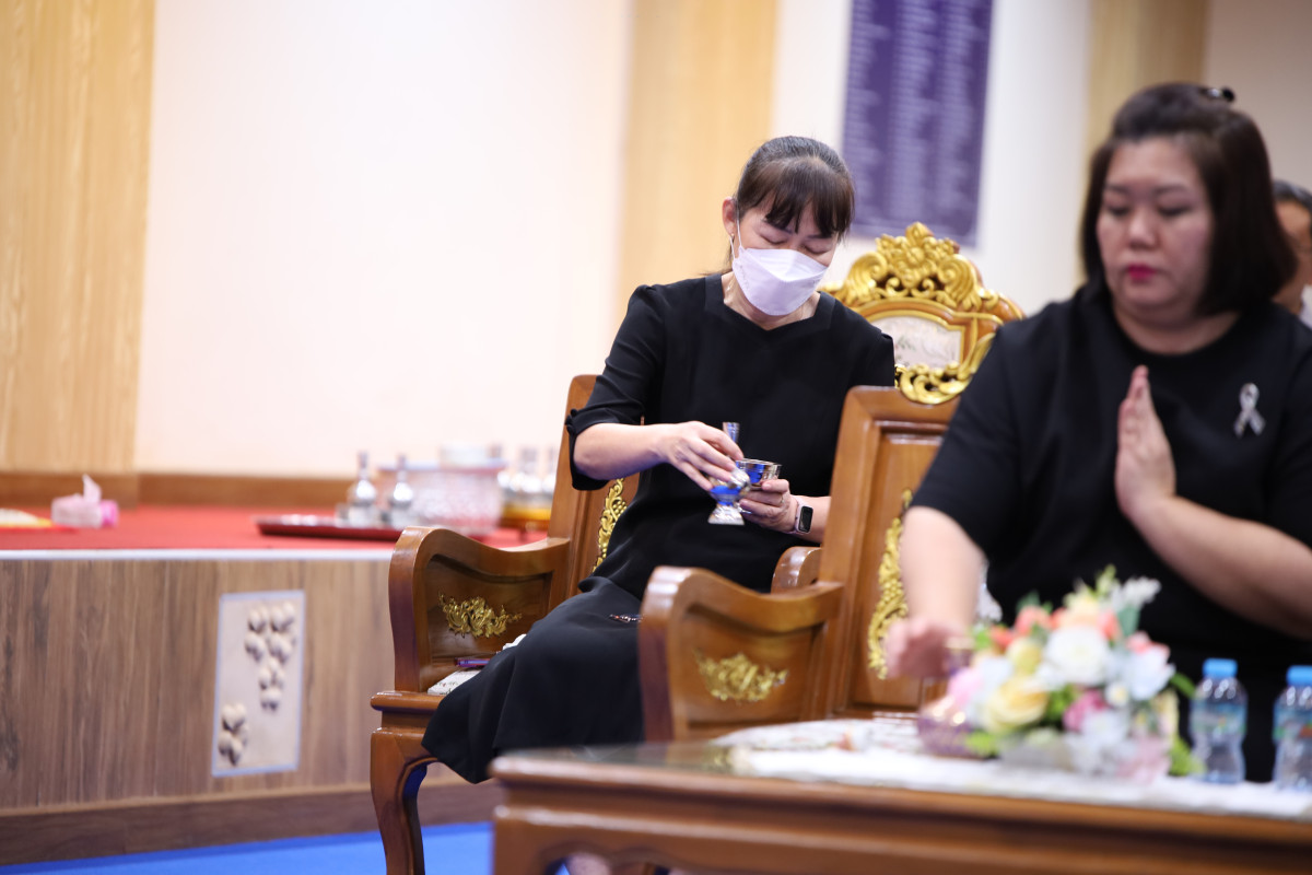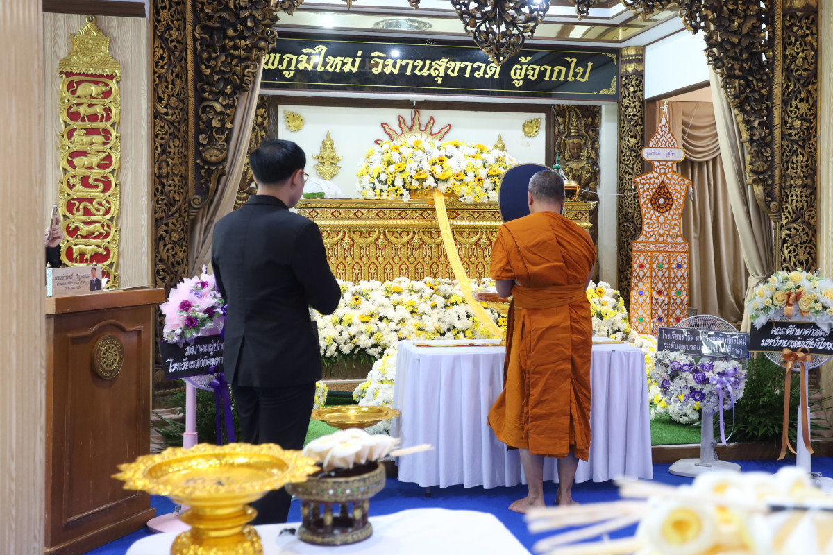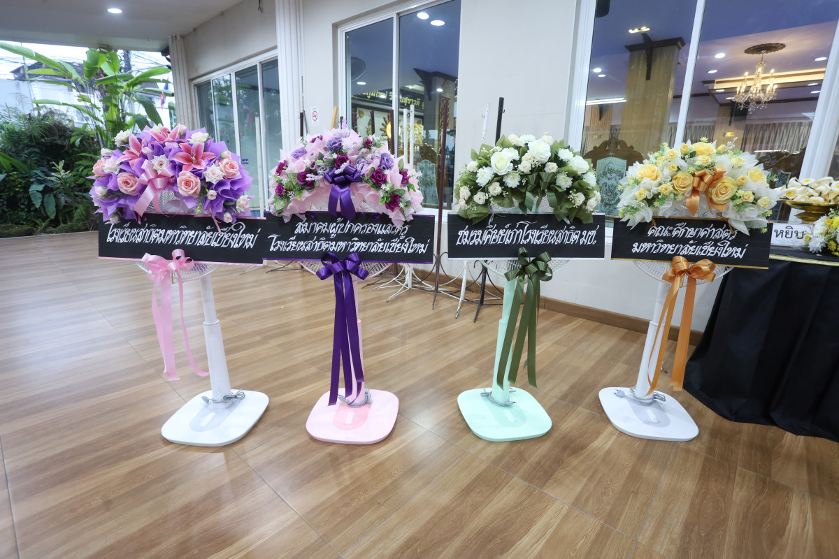ในการนี้ ผู้ช่วยศาสตราจารย์ ดร.ทิพย์รัตน์ นพฤทธิ์ คณบดีคณะศึกษาศาสตร์ ให้เกียรติเป็นประธานในพิธี พร้อมด้วย รองศาสตราจารย์ ดร.สมเกียรติ อินทสิงห์ ผู้อำนวยการโรงเรียนสาธิตมหาวิทยาลัยเชียงใหม่ คณาจารย์ และบุคลากร รวมถึงสมาคมผู้ปกครองและครูโรงเรียนสาธิตมหาวิทยาลัยเชียงใหม่ และสมาคมศิษย์เก่าโรงเรียนสาธิตมหาวิทยาลัยเชียงใหม่ เข้าร่วมพิธีเพื่อไว้อาลัยและแสดงความเสียใจต่อครอบครัวผู้วายชนม์