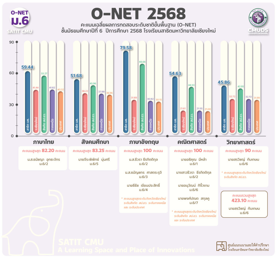 สรุปผลการทดสอบระดับชาติขั้นพื้นฐาน (O-NET) ชั้นมัธยมศึกษาปีที่ 6 ปีการศึกษา 2568 โรงเรียนสาธิตมหาวิทยาลัยเชียงใหม่